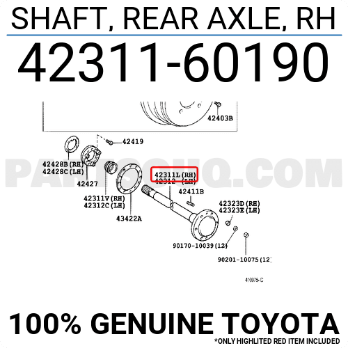 The rear right axle shaft is a crucial component in your vehicle’s drivetrain. It transmits rotational force from the differential to the rear wheels, making sure your car moves smoothly and powerfully. With it, all the engine’s power can be effectively delivered to the pavement, giving you the traction and control needed for safe and reliable driving.